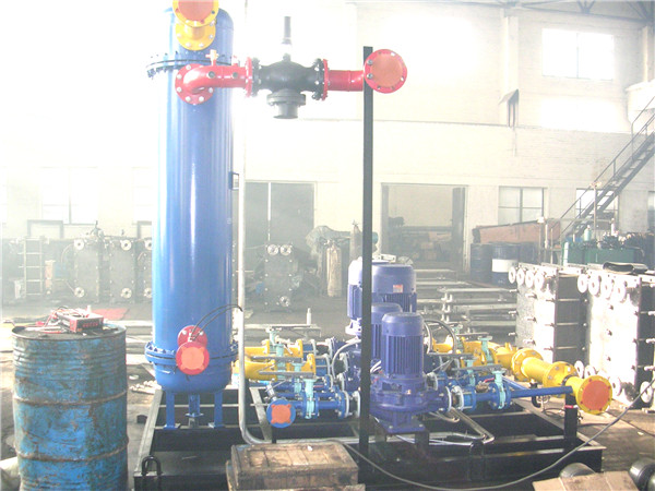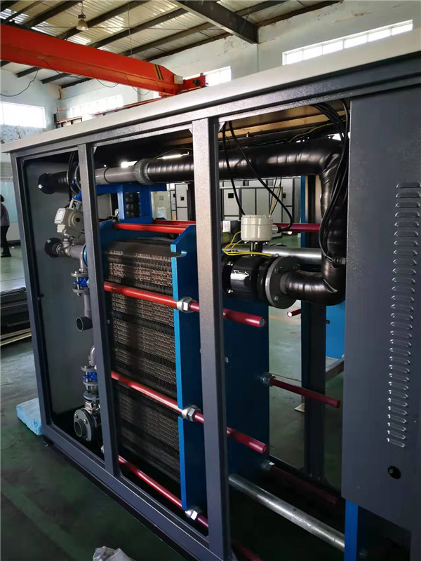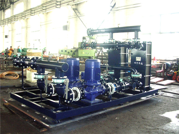 換熱機組根據配置的不同一般由板式換熱器、循環(huán)泵、補水泵、配電柜、各種閥門、儀表、管道及基礎底座組成。換熱機組各部分的作用:1、板式換熱器把一次網帶來的熱量或冷量通過板式換熱器傳遞到二次側2、循環(huán)泵通過循環(huán)泵的運行給整個系統提供循環(huán)的動力源3、補水泵向系統提...
